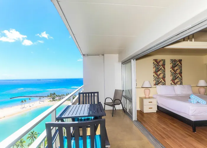 Ilikai Tower 1842 Lagoon View 1Br villa also offers views of the sea.
